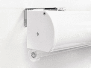 В закрытой системе вал с намотанной на него тканью полностью скрывается в специальном коробе, по краям полотно удерживается направляющими планками. Такой вариант имеет более эстетичный и завершенный вид, а короб обеспечивает защиту вала с полотном от пыли и механических повреждений.